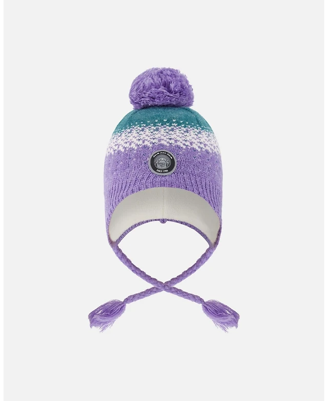 Deux par Girl Lined Peruvian Knit Hat with Pompom Lilac and Green - Toddler|Child