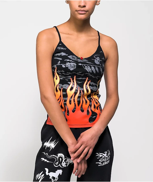 Beyond Control Women's Flame Palmette Over-The-Shoulder Tankini
