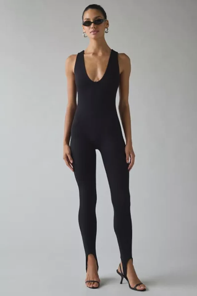 AFRM Beloit Noir Catsuit Plunging Low-Back