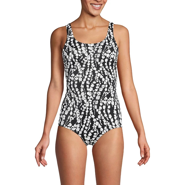 Lands' End Women's D-Cup Tugless Low Leg One Piece Swimsuit