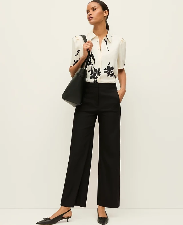 Ann Taylor The Petite Side Zip Wide-Leg Pant Ponte Black Women's