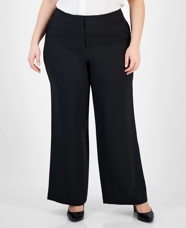 Ak Anne Klein Plus Pull-On Wide-Leg Pants
