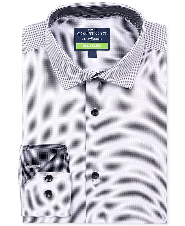 Men's Recycled Slim Fit Micro Texture 4-Way Stretch Performance Dress Shirt