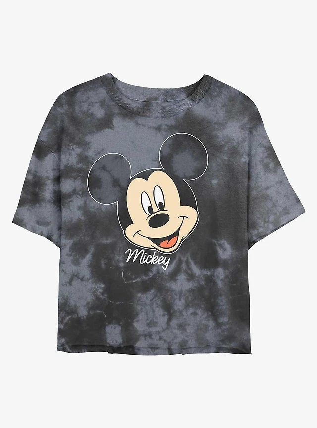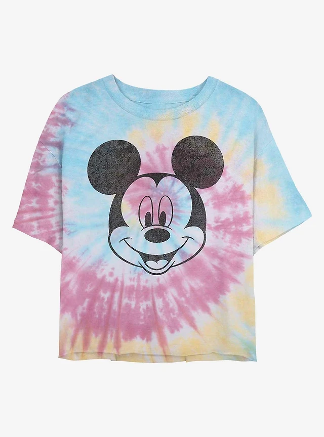 Disney Mickey Mouse Classic Friends Faces Tie Dye Crop Girls T-Shirt