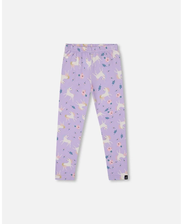Deux par Little Girls Cotton Jersey Leggings Purple Gray with Floral Detail - Toddler|Child