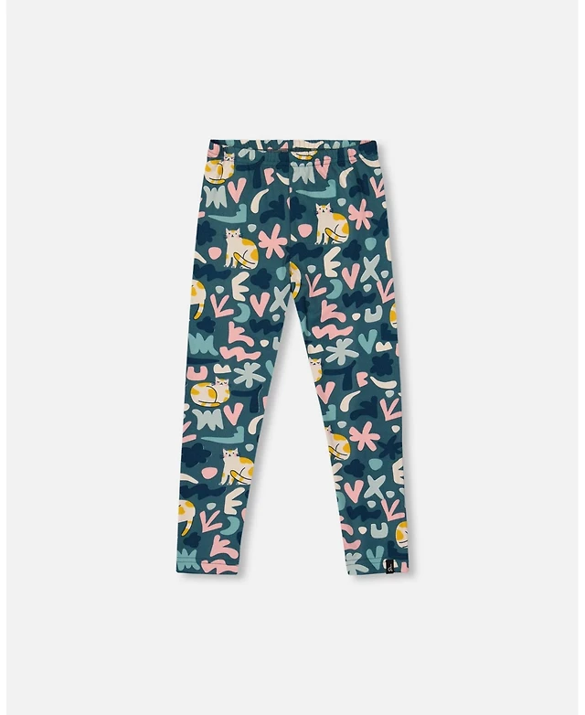Deux par Girl Cotton Jersey Leggings Jade Green with Floral Detail - Toddler|Child