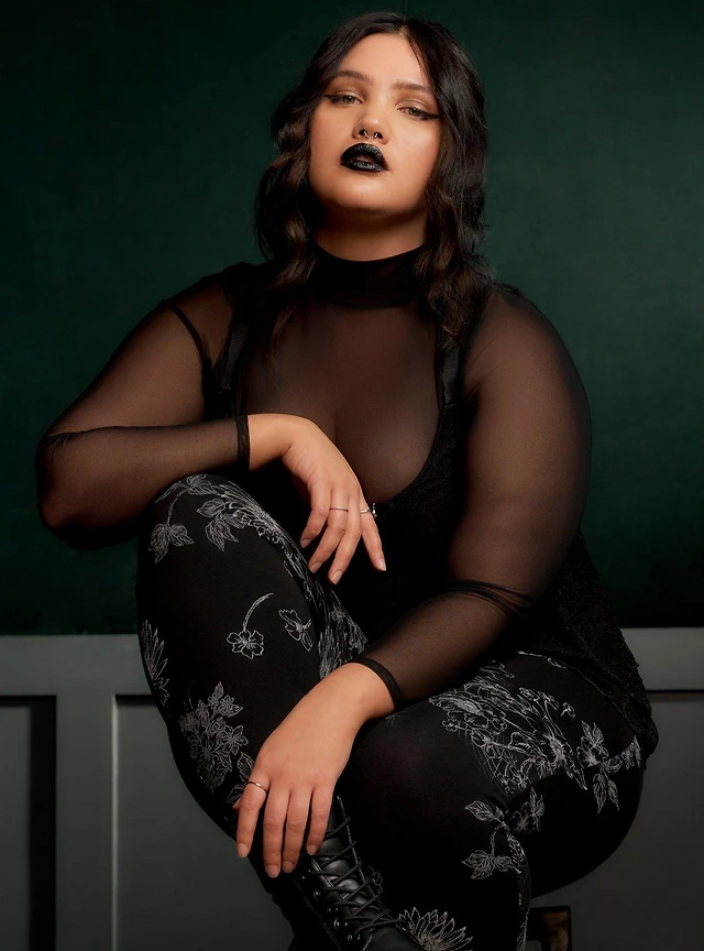 Deux par Big Girls Leggings Dark Green with Flower Print