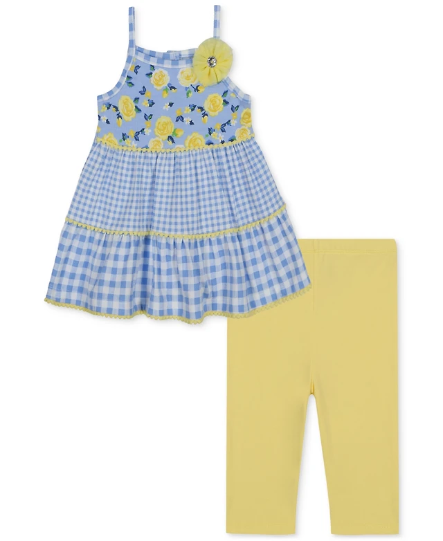 Deux par Girl Leggings Green with Flower Print - Toddler|Child