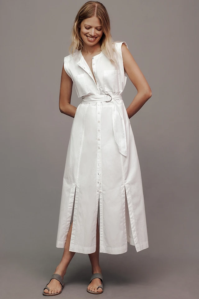 Cotton Poplin Off-The-Shoulder Maxi Shirt Dress