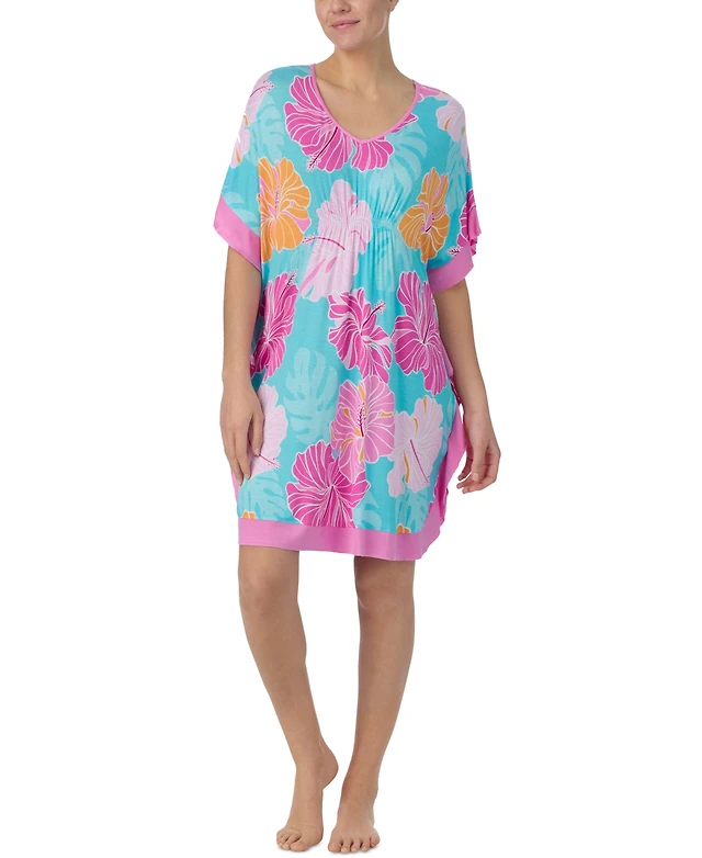 Ellen Tracy Women's Short Floral V-Neck Sleep Caftan