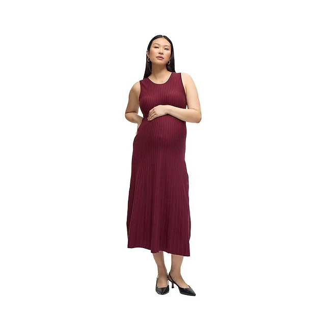 Pinkblush Maternity Beige Striped Knit Fitted Sleeveless Maxi Dress