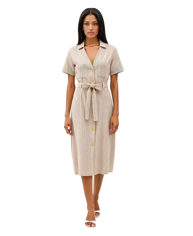 On 34th Women's Striped Tie-Waist Midi Dress, Exclusively at Macy's