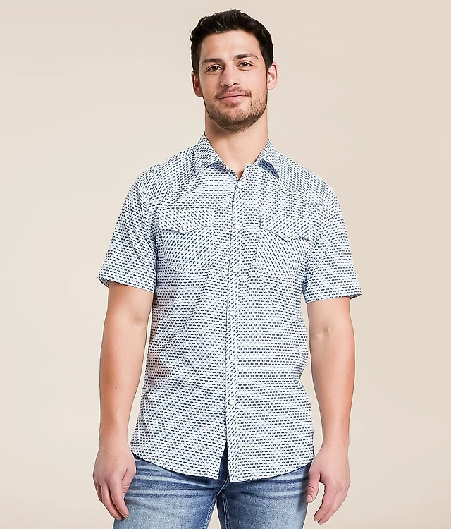 Guess Men's Wyatt Short Sleeve Striped Button-Front Camp
