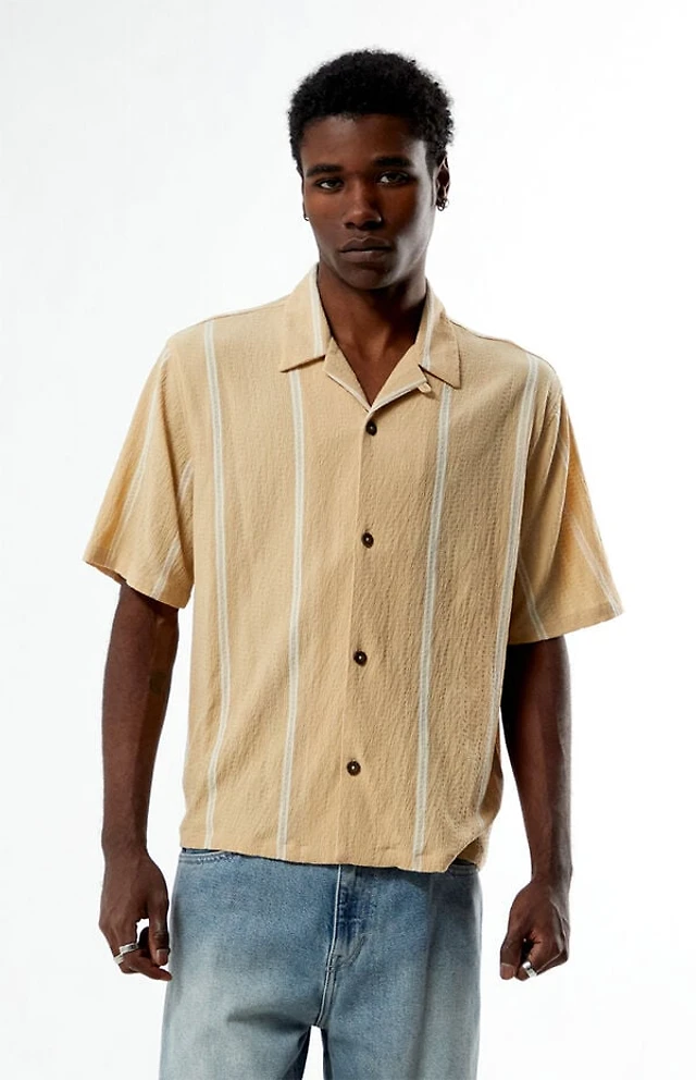 Pacsun Tan Klein Striped Oversized Camp Shirt