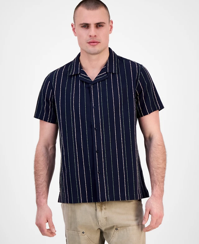 Weatherproof Vintage Men's Airtex Short Sleeve Striped Button-Front Camp Shirt