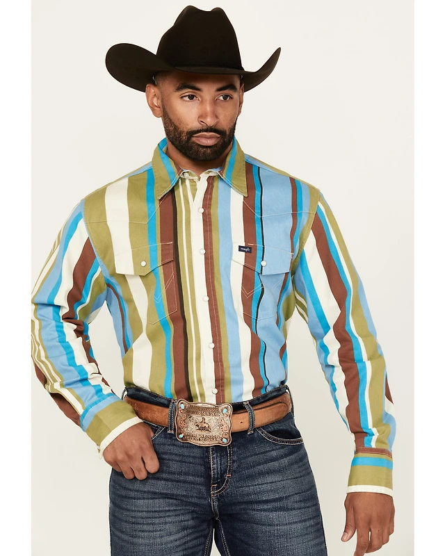 Wrangler Retro Men's Striped Print Long Sleeve Snap Western Shirt