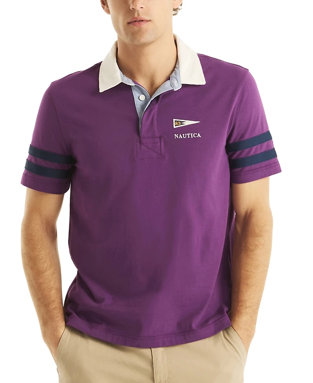 Nautica Men's Short Sleeve Striped-Trim Rugby Polo Shirt