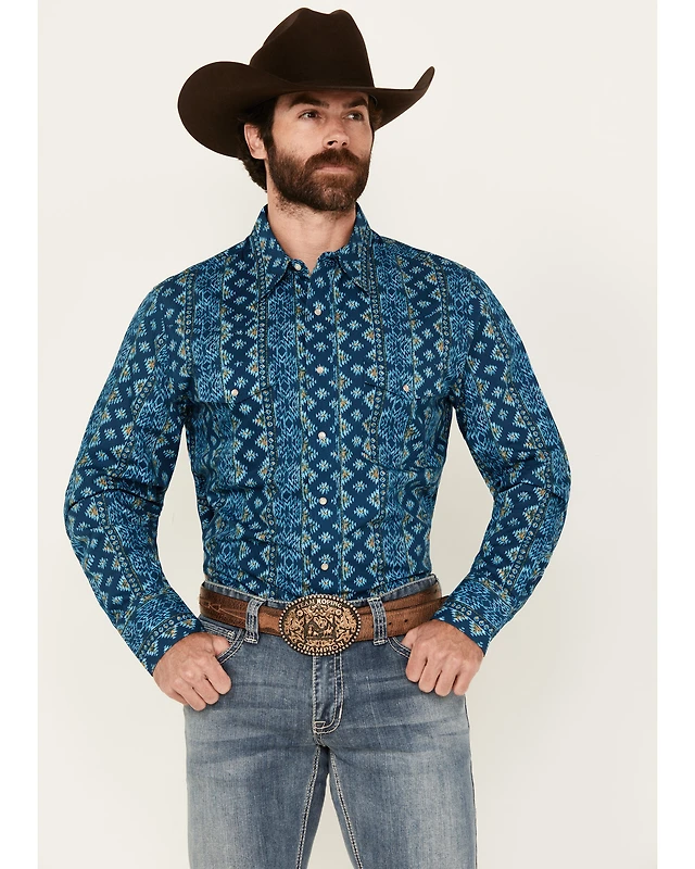 Rock & Roll Denim Men's Southwestern Striped Print Long Sleeve Snap Stretch Western Shirt