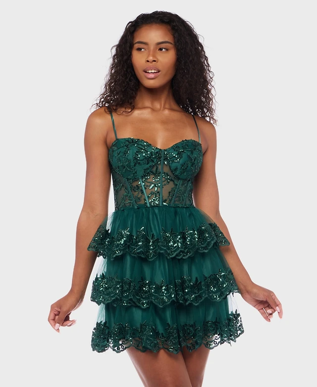 Alex & Sophia Juniors' Satin Corset Fit Flare Dress
