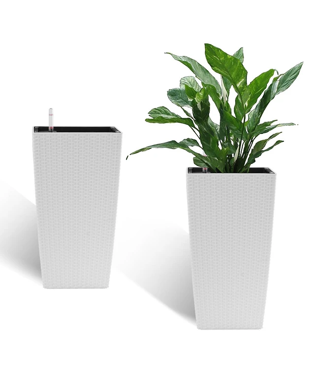 Streamdale Furniture Set of 2 Faux Rattan Tall Planters with Water Level Monitor