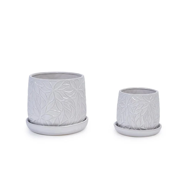 LuxenHome 2-Piece Marble Off-White Ribbed Texture MgO Planter Set, Indoor and Outdoor