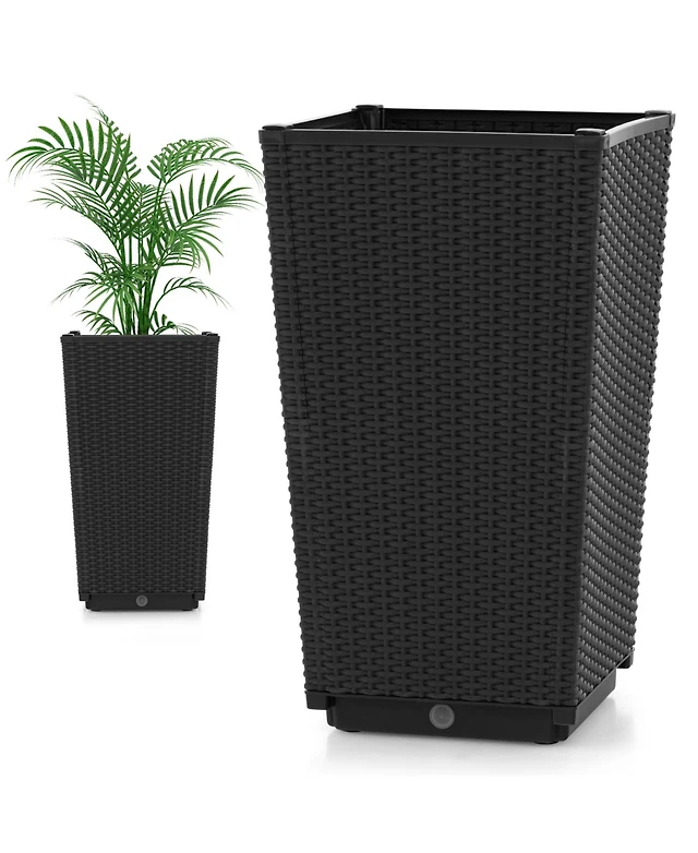 Slickblue Outdoor Wicker Flower Pot Set of 2 with Drainage Hole for Porch Balcony