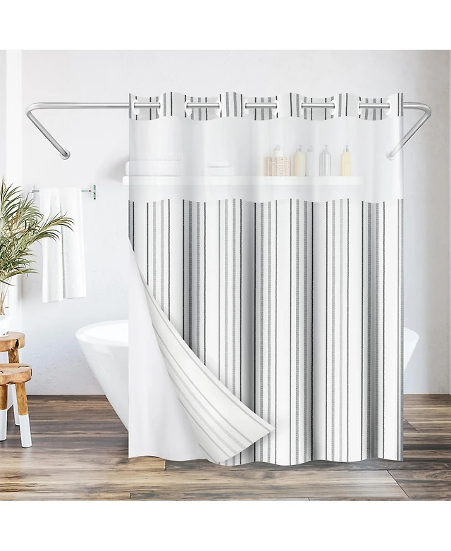 Kenney Medium Weight Peva Shower Curtain Liner and Beaded Roller Ring Set