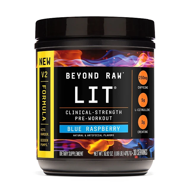 Beyond Raw Lit V2 Pre-Workout - Blue Raspberry (30 Servings) Zero Sugar