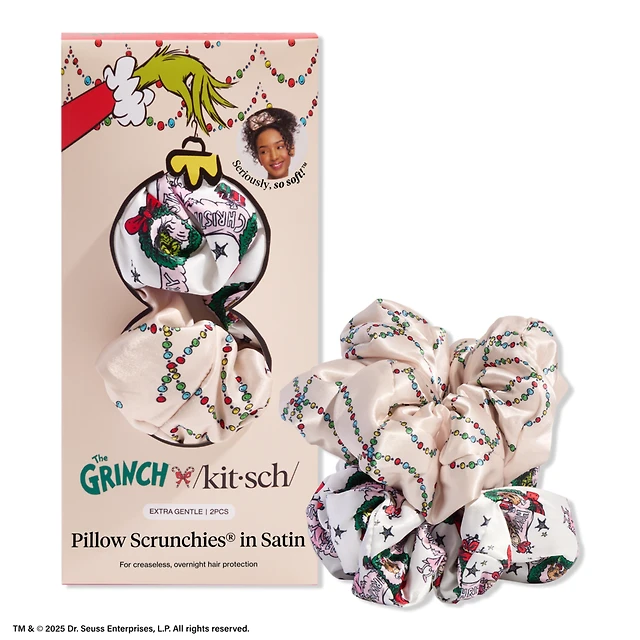The Grinch x Kitsch Pillow Satin Scrunchie 2 Piece Set