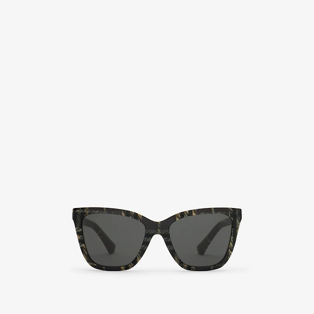 Inlaid Check Square Sunglasses in Dark khaki - Women | Burberry® Official