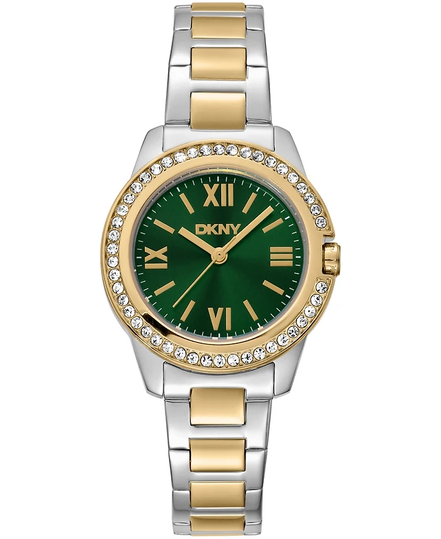 Dkny Women's White Mop Dial Crystal Accented Case Two-Tone Gold Stainless Steel Bracelet Watch, 23 x 30mm