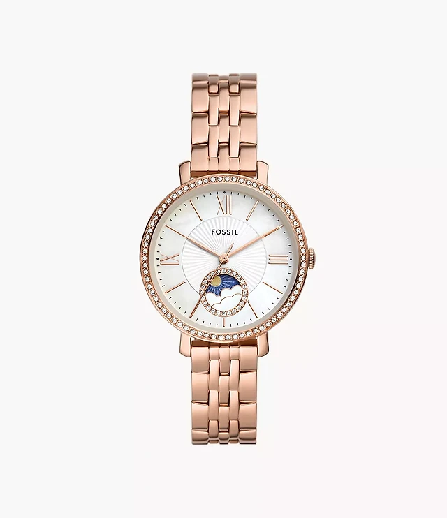Jacqueline Sun Moon Multifunction Rose Gold-Tone Stainless Steel Watch