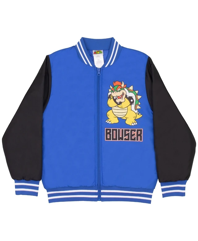 Mario Boys Super Bros Bowser Zip-Up Graphic Print Bomber Varsity Jacket