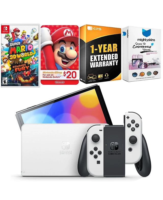 Nintendo Switch White Oled Console with Super Mario 3D World + Bowser s Fury , Nintendo $20 eShop Gift Card