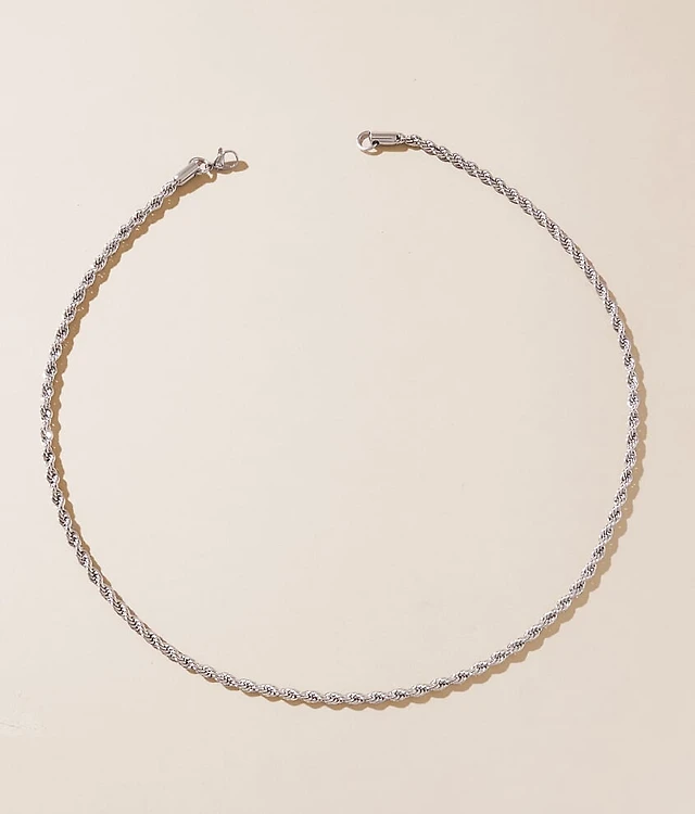 Glitter Rope Chain Necklace 3mm Hollow 14K White Gold 24"