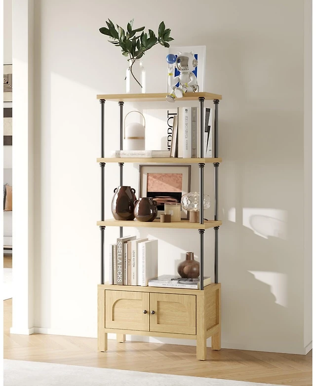 gaomon 5-Tier Farmhouse Bookcase – Wooden Bookshelf with Open Display Shelves and Storage, Freestanding Home Office, Living Room, Bedroom
