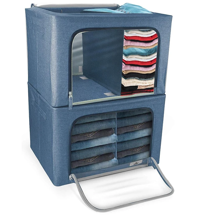 Sorbus 2 Pack Large Foldable Storage Box - Metal Frame, Oxford Fabric, Window & Handles Organization for Bedroom, Linens Clothes (Beige