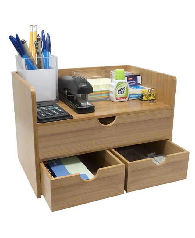 Sorbus 3-Tier Bamboo Desk Organizer Countertop Organization and Storage with 3 Drawers declutter Office, Makeup Vanity and more