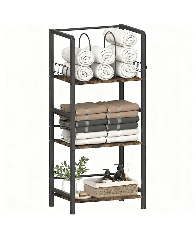 Yigii Freestanding Towel Rack 3-Tier Metal Shelf U-Shaped Dividers Hooks Bathroom