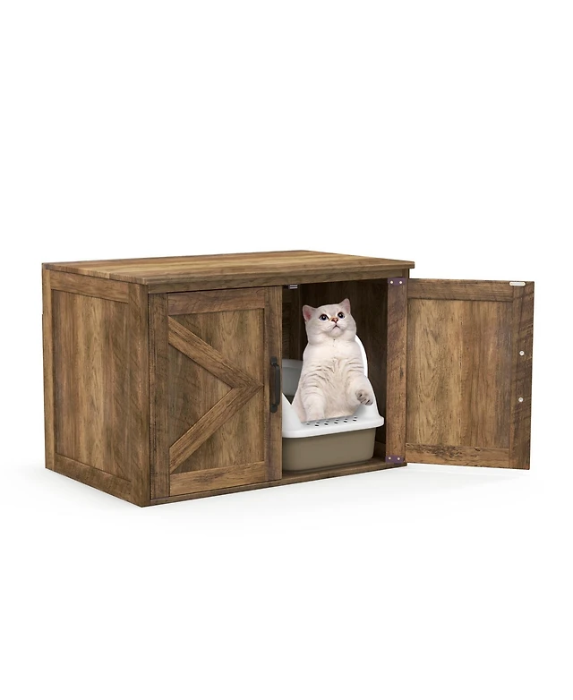 Flip Top Hidden Cat Washroom Furniture with Double Barn Doors and Removable Divider