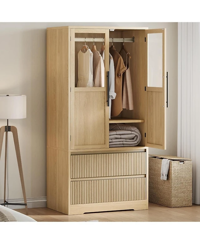 Gaomon Rattan 5 Drawer Dresser, 44'' Tall Narrow Chest, Farmhouse Wood Dresser with Metal Legs, Bedroom Cabinet