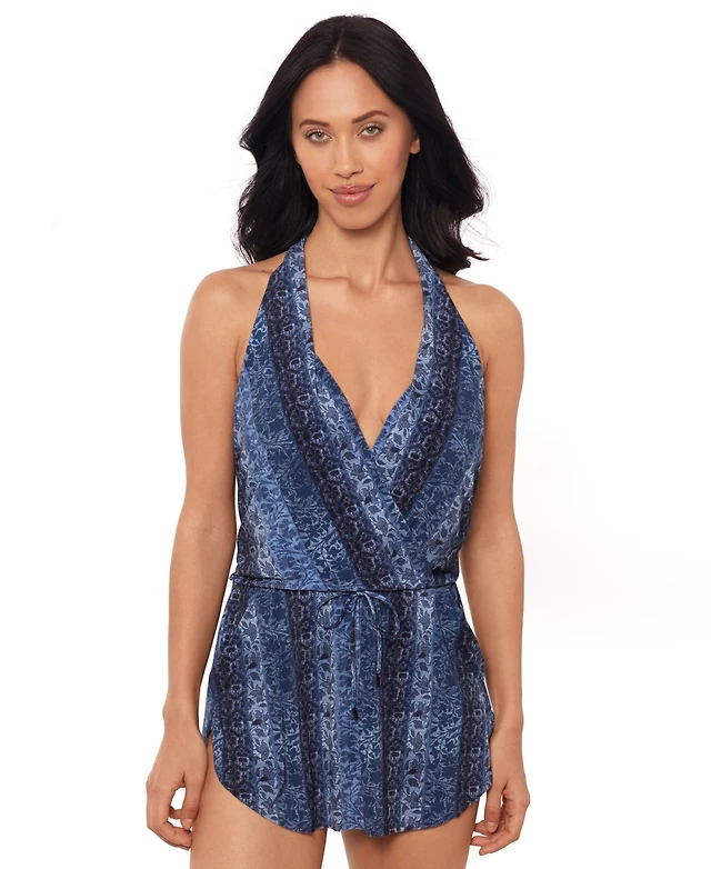 Lands' End Women's Side Tie Mini Swim Dress Swimsuit