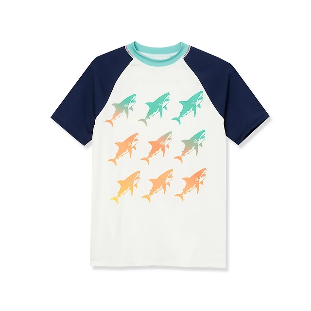 Lands' End Big Boys Husky Chlorine Resistant Short Sleeve Crew Neck Upf 50 Rash Guard