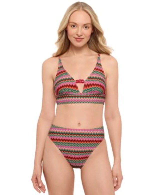 Kate Spade Womens Printed Shirred Bikini Top High Waist Bottoms