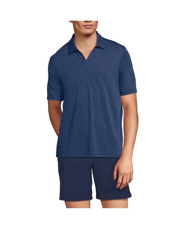 Lands' End Men's SunShade Upf 50 Short Sleeve Johnny Collar Polo Rash Guard Shirt