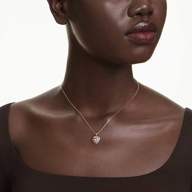 One set, Heart cut, Pavé, Heart, Pink, Mixed metal finish by SWAROVSKI
