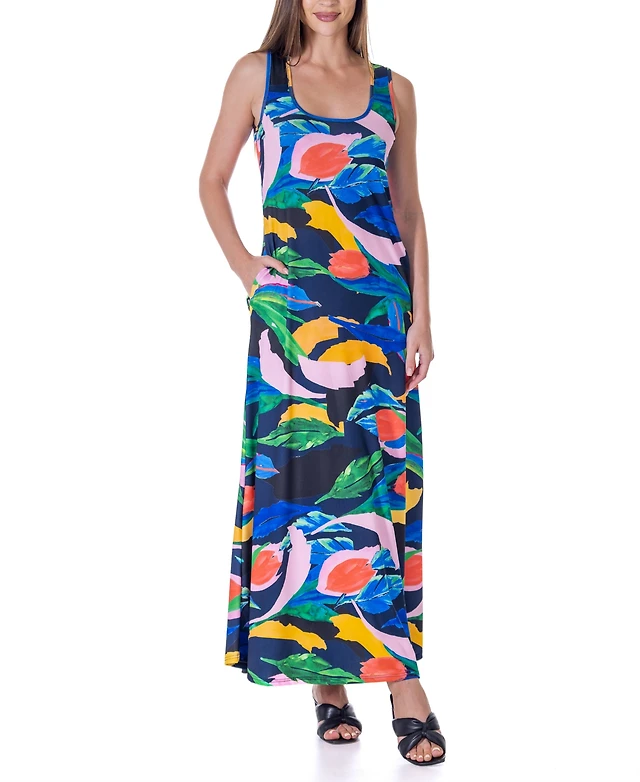 24seven Comfort Apparel Sleeveless Casual Maxi Pocket Dress
