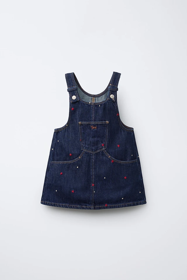 EMBROIDERED FLOWER DENIM OVERALL DRESS