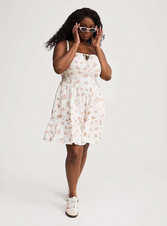 Smocked Ruched Mini Dress