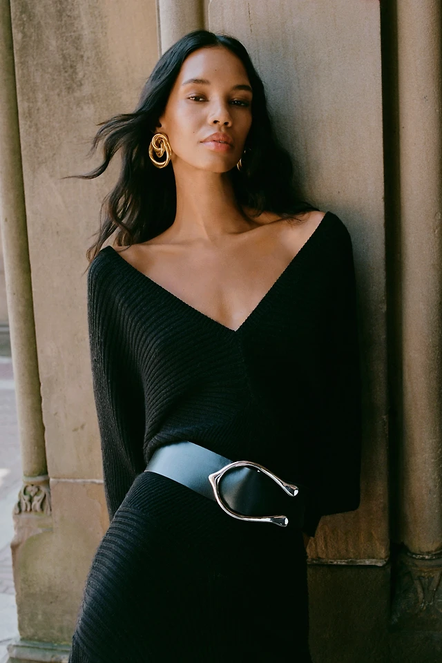 Cross Over V-Neck Mini Sweater Dress